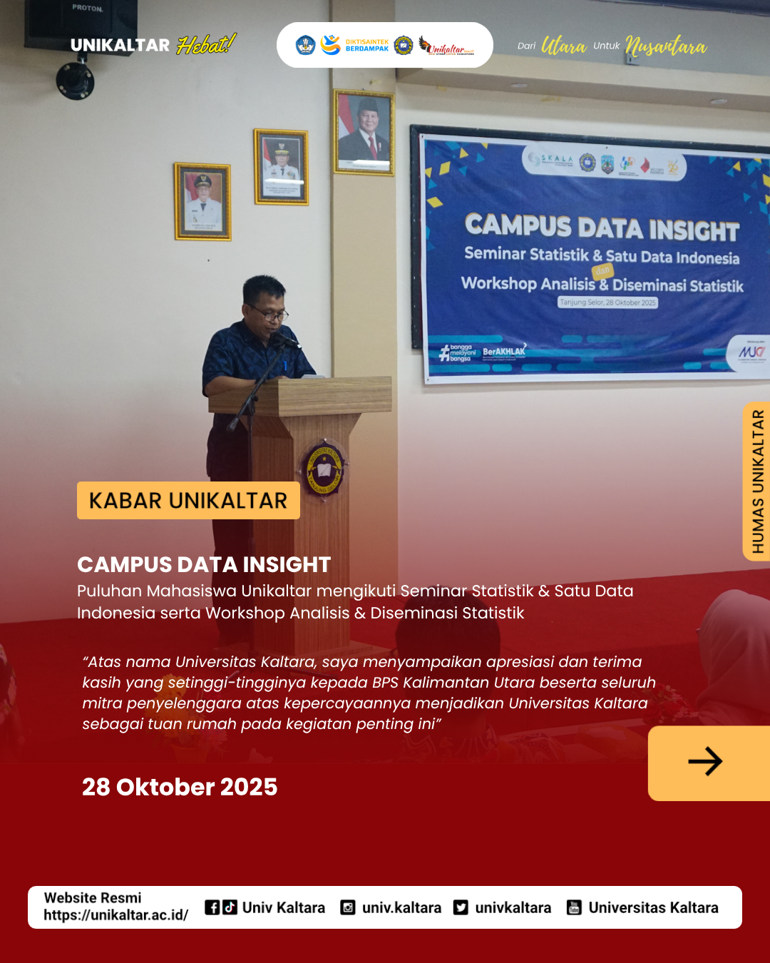 Tanjung Selor, 28 Oktober 2025 - Universitas Kaltara (Unikaltar) bekerjasama dengan Badan Pusat Statistik Provinsi Kalimantan Utara, Bappeda dan Lit... Selengkapnya