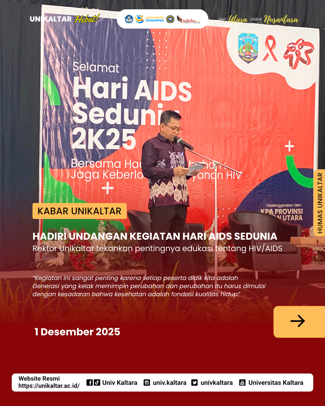 Hadiri Undangan Kegiatan Hari AIDS Sedunia - Rektor Unikaltar tekankan pentingnya edukasi tentang HIV/AIDS