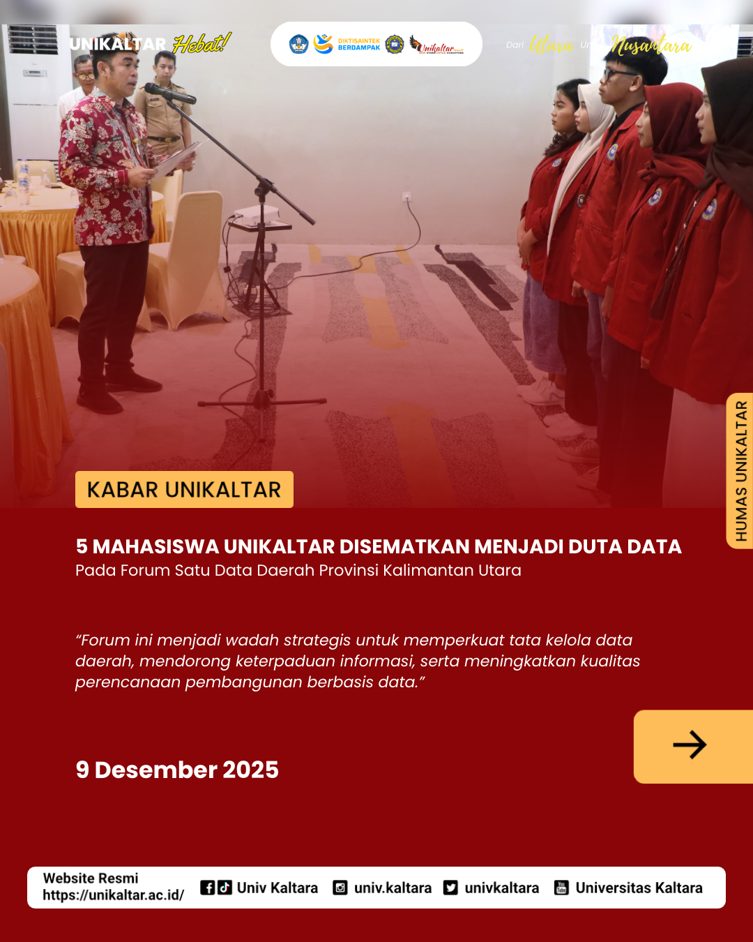 5 Mahasiswa Unikaltar Disematkan Menjadi Duta Data Pada Forum Satu Data Daerah Provinsi Kalimantan Utara