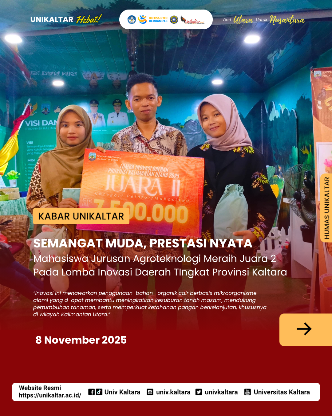 SEMANGAT MUDA, PRESTASI NYATA Mahasiswa Jurusan Agroteknologi Meraih Juara 2 Pada Lomba Inovasi Daerah TIngkat Provinsi Kaltara