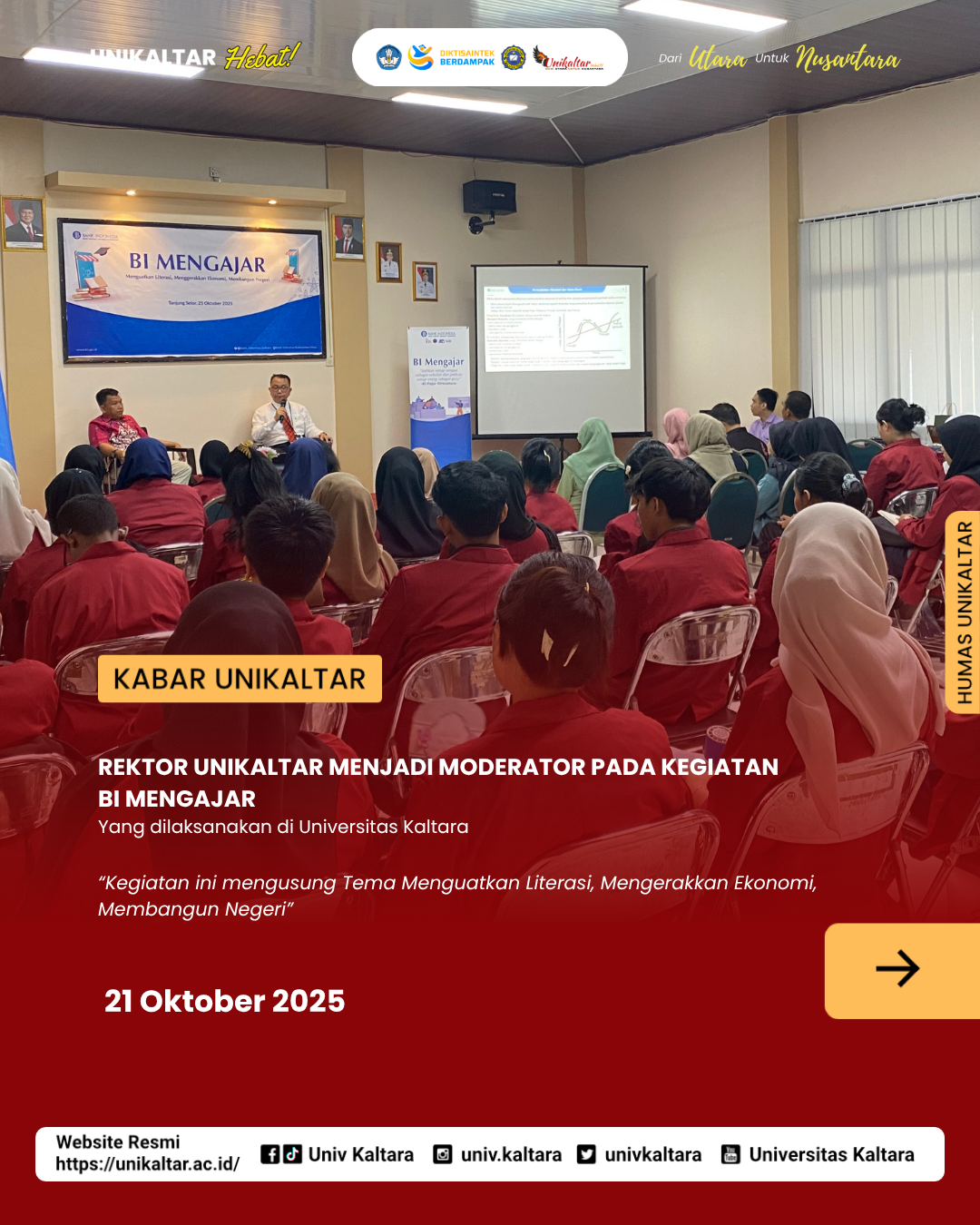 Selasa, 21 Oktober 2025 - Rektor Universitas Kaltara menjadi moderator pada kegiatan yang dilaksanakan oleh Bank Indonesia Perwakilan Provinsi Kaliman... Selengkapnya